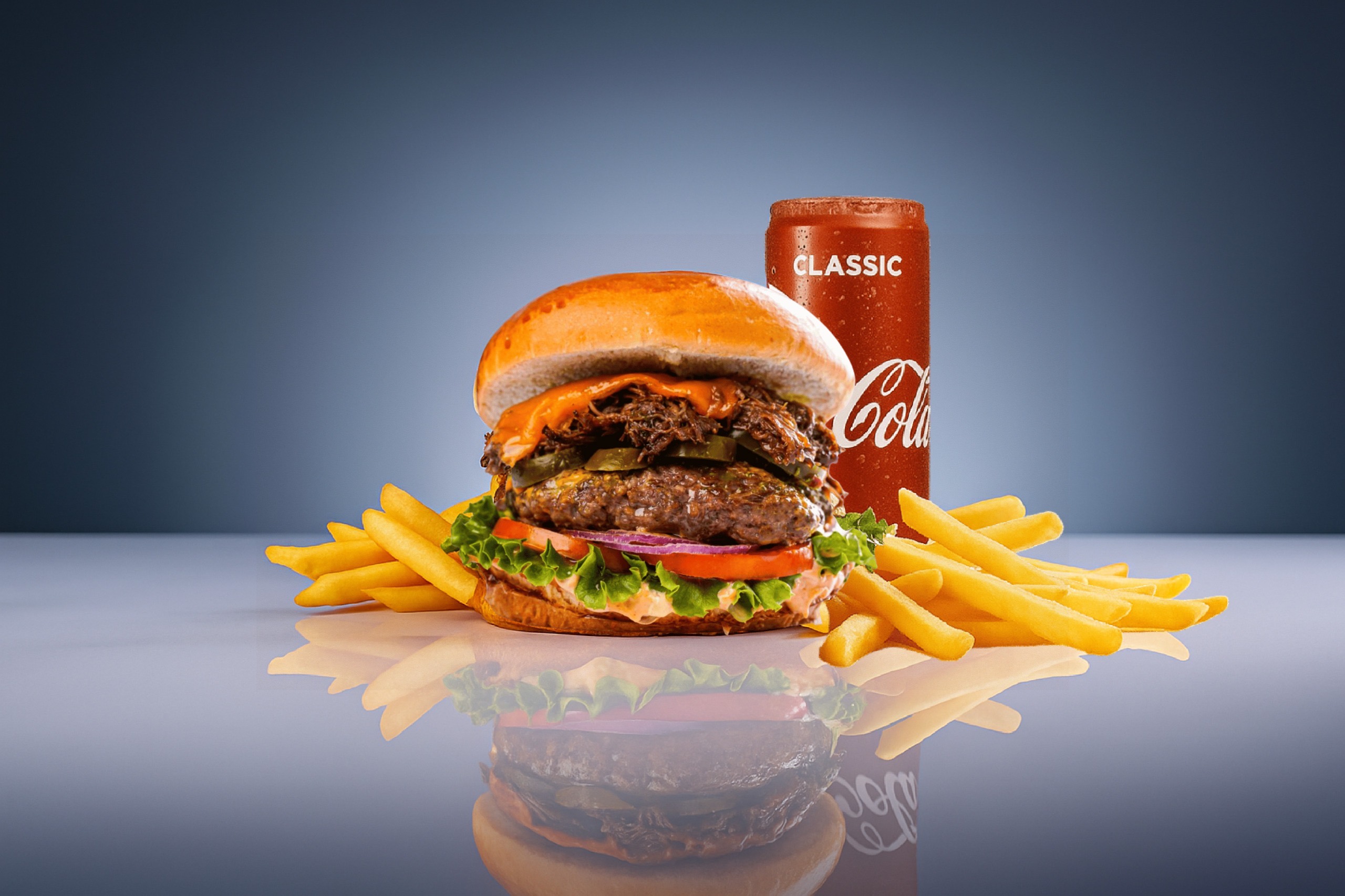 בורגריאנו+כדורי קראנצ׳י+צ׳יפס+שתיה